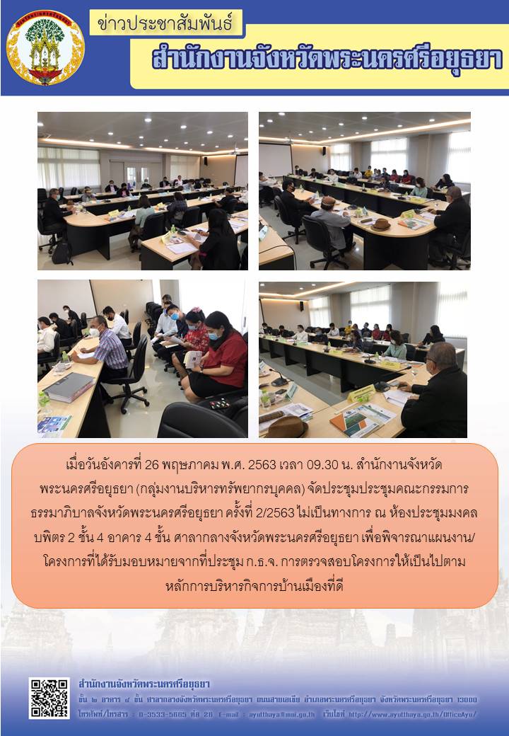 การประชุมคณะกรรมการธรรมาภิบาลจังหวัดพระนครศรีอยุธยา ครั้งที่ 2/2563 ไม่เป็นทางการ